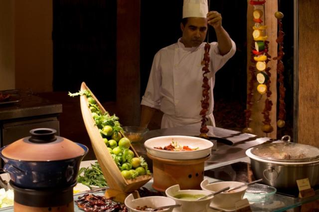 | Kuchyně na Maledivách nabízí plno gurmánských specialit a lahůdek. Skládá se z ovoce a zeleniny, kokosových ořechů, mořských plodů. Tamní speciality ovlivnily národy, které měly historicky s Maledivami co do činění. Vliv jednotlivých kuchyní se dodnes promítá v pokrmech domorodců a tvoří zajímavé směsi chutí. Hlavní vliv má pochopitelně kuchyně indická, v mnoha ohledech jsou obě kuchyně totožné. Hotelové restaurace nabízí širokou škálu, jak tradičních pokrmů tak mezinárodních k uspokojení strávníků z celého světa. |